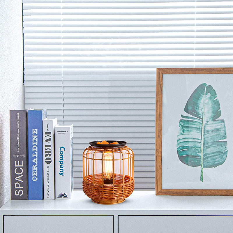 Contemporary Retro Round Horn Shape Solid Wood Iron 1-Light Aroma Melted Wax Table Lamp For Bedroom