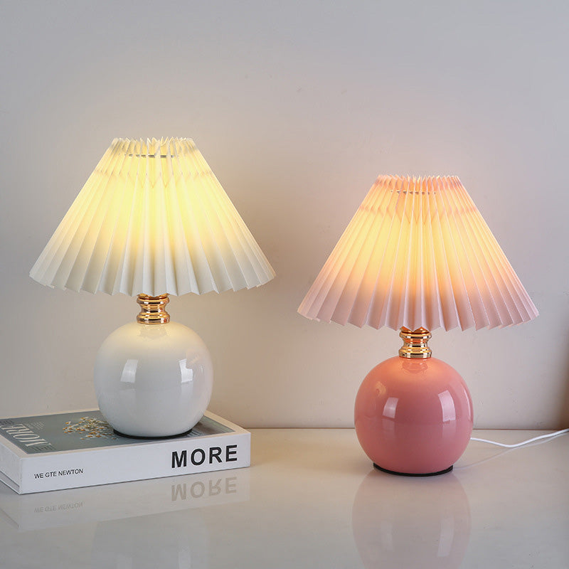 Modern Art Deco Orb Base Pleated Fabric Ceramic 1-Light Table Lamp For Bedroom
