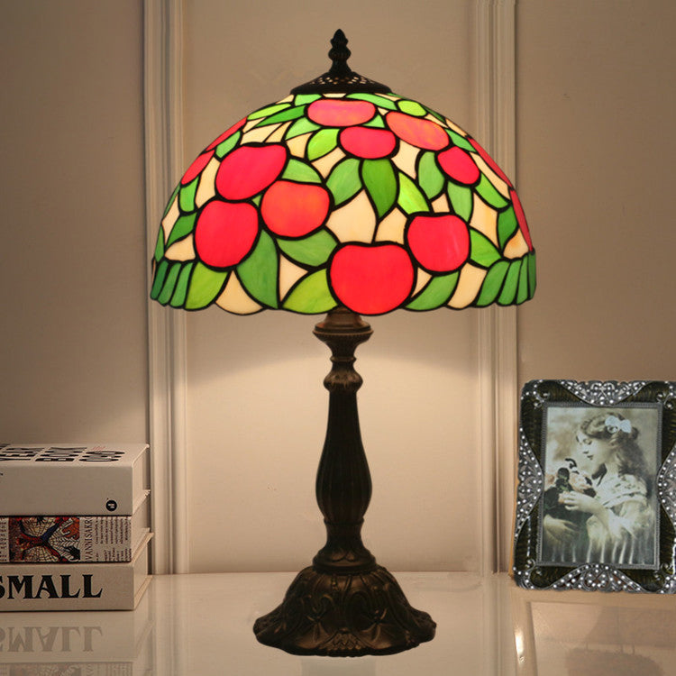 Traditional Tiffany Pastoral Apple Pattern Stained Glass Resin 1-Light Table Lamp For Home Office