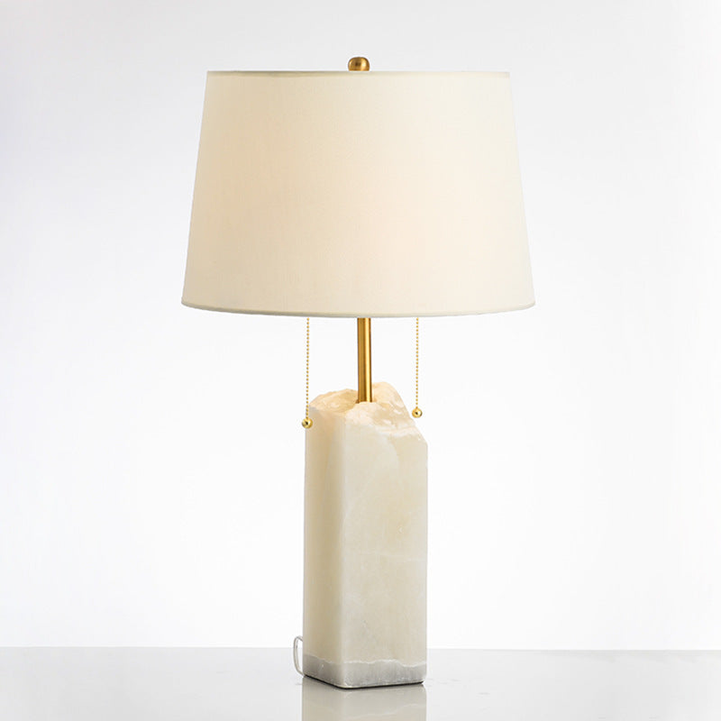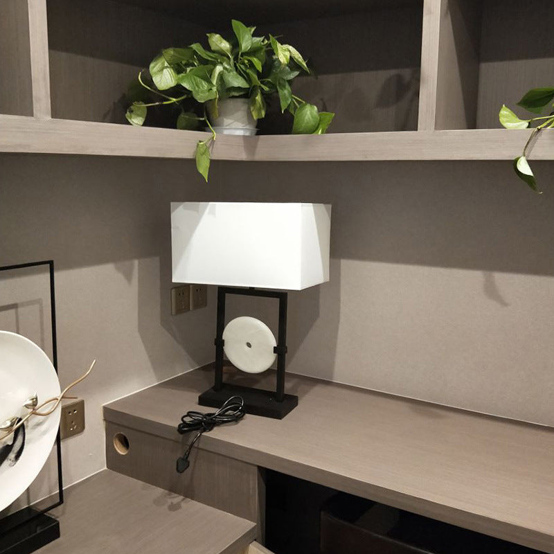 Traditional Chinese Rectangular Frame Round Hardware Marble Fabric 1-Light Table Lamp For Bedroom
