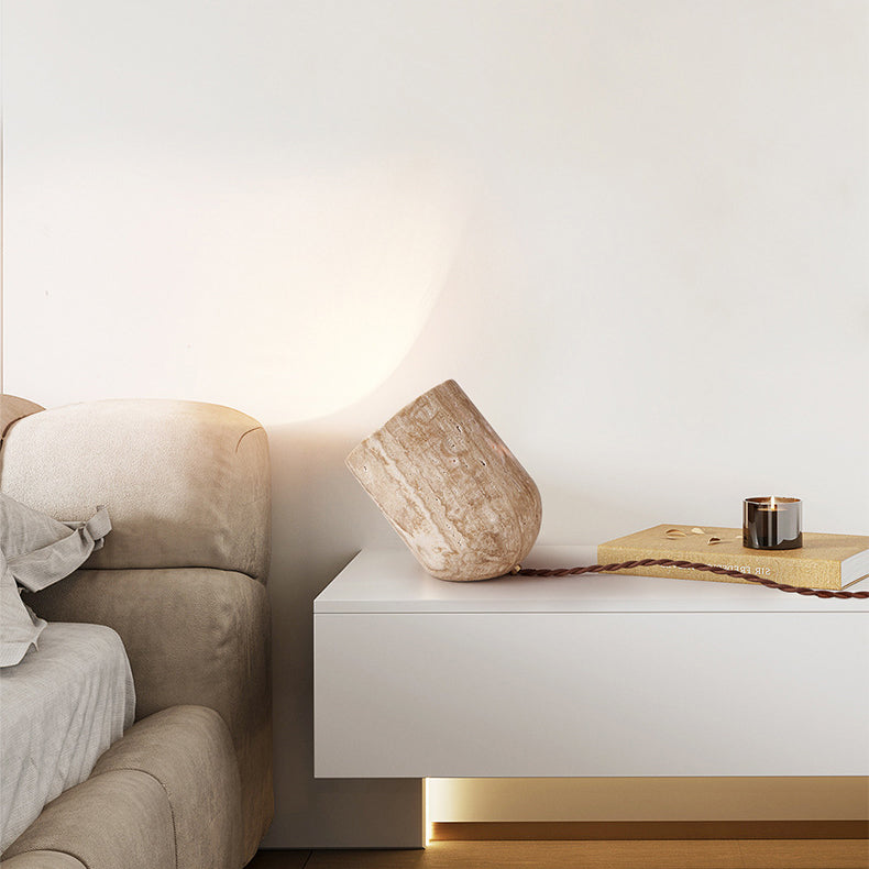 Traditional Japanese Travertine Handmade Cylinder 1-Light Table Lamp For Bedside