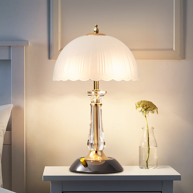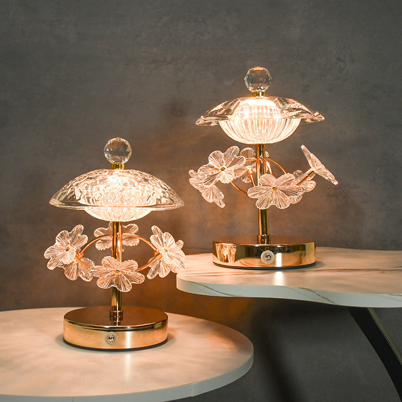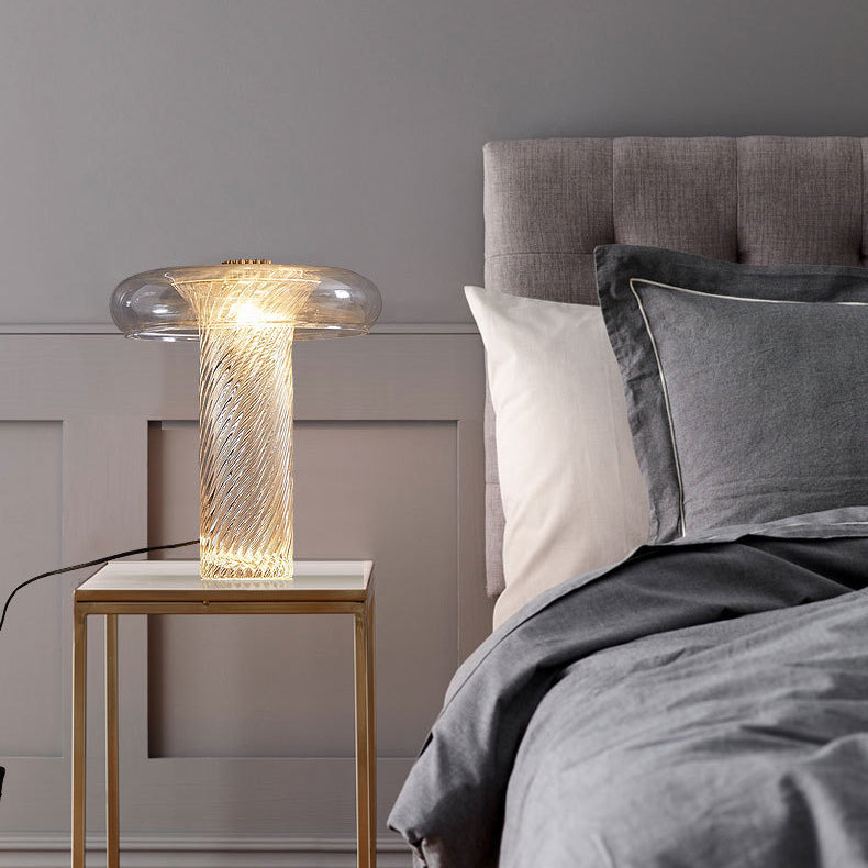 Modern Luxury Round Umbrella Metal Glass 1-Light Table Lamp For Bedroom