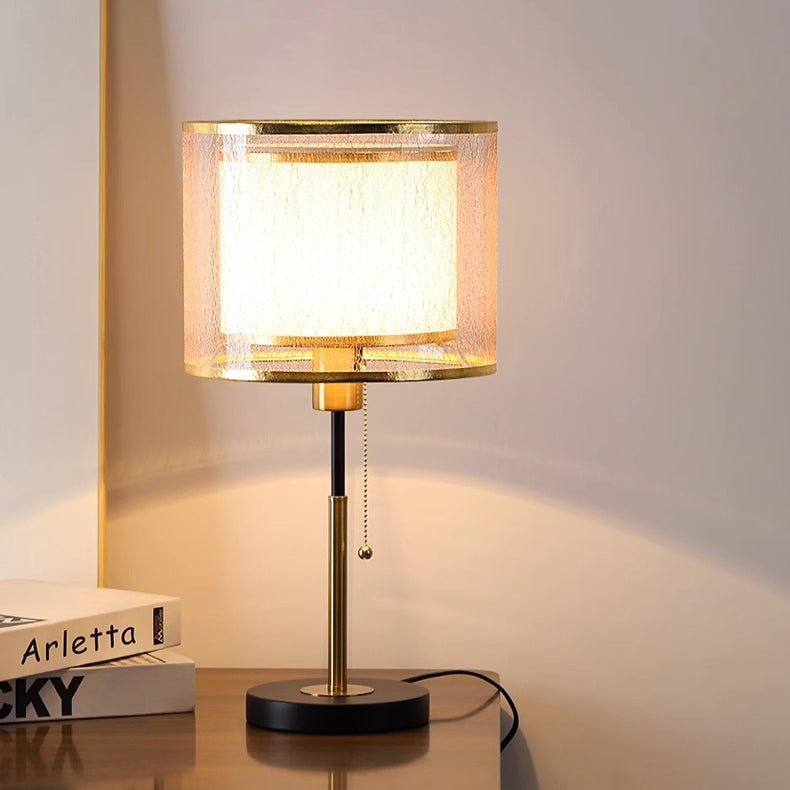 Modern Minimalist Round Column Fabric Iron 1-Light Table Lamp For Bedroom