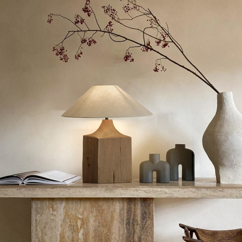 Contemporary Retro Wood Linen Cone Cylinder 1-Light Table Lamp For Study