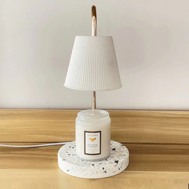 Modern Art Deco Round Curved Rod Terrazzo Hardware Ceramic 1-Light Aroma Melt Wax Table Lamp For Bedroom
