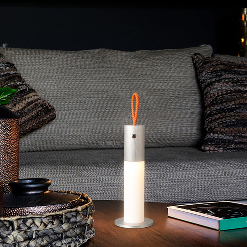Modern Minimalist Portable Carrying Cord Cylinder Aluminum Acrylic LED Table Lamp For Bedroom