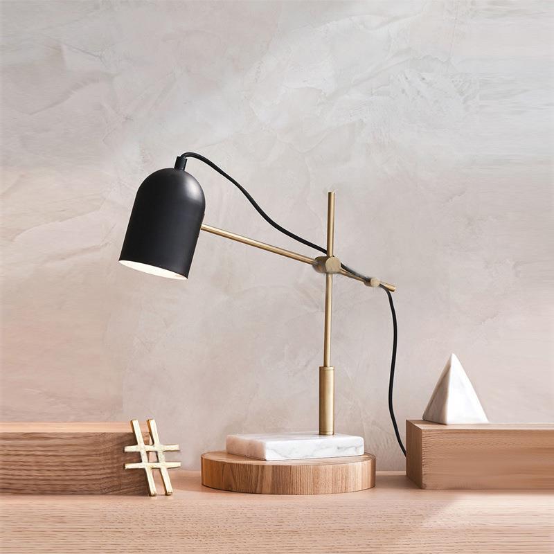 Contemporary Scandinavian Round Cylinder Disc Marble Hardware 1-Light Table Lamp For Bedroom