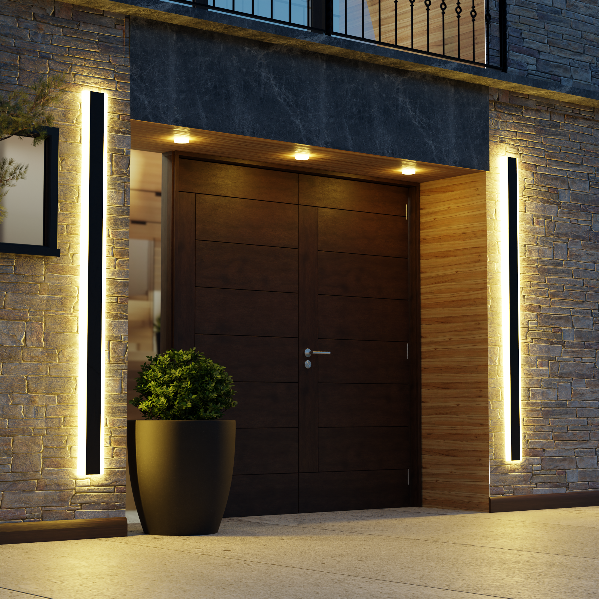 Edge Horizon Modern Outer Glow Linear Metal Outdoor Wall Light, Dark Steel