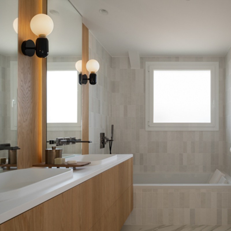 Jaime Hayon created the Aballs Suspension Small, combining the world class craftsmanship skills of Bosa with the traditional artistry of hand blown glass. The ceramics and blown glass are linked by a polished brass ring. The dimmer’s control lever is also made of polished brass. The Aballs Suspension Large is made up of a blown glass diffuser and a gold, white or black melat base. The result produces a warm ambient light and can be used in a domestic environment as well as in contract projects.