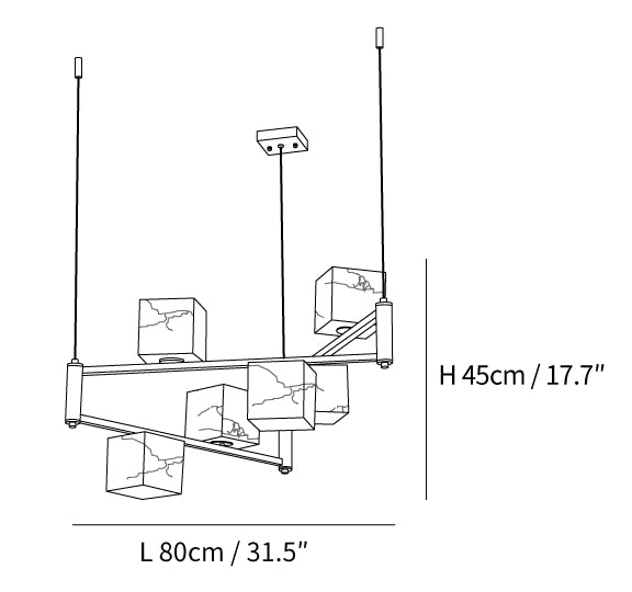 This Alabaster Square Box Chandelier is crafted with natural Alabaster for a sleek and minimalist look that evokes a romantic atmosphere. Its snowflake gypsum is carefully processed to preserve its natural beauty, while natural stone materials are used to create a look of textural and tactile softness.