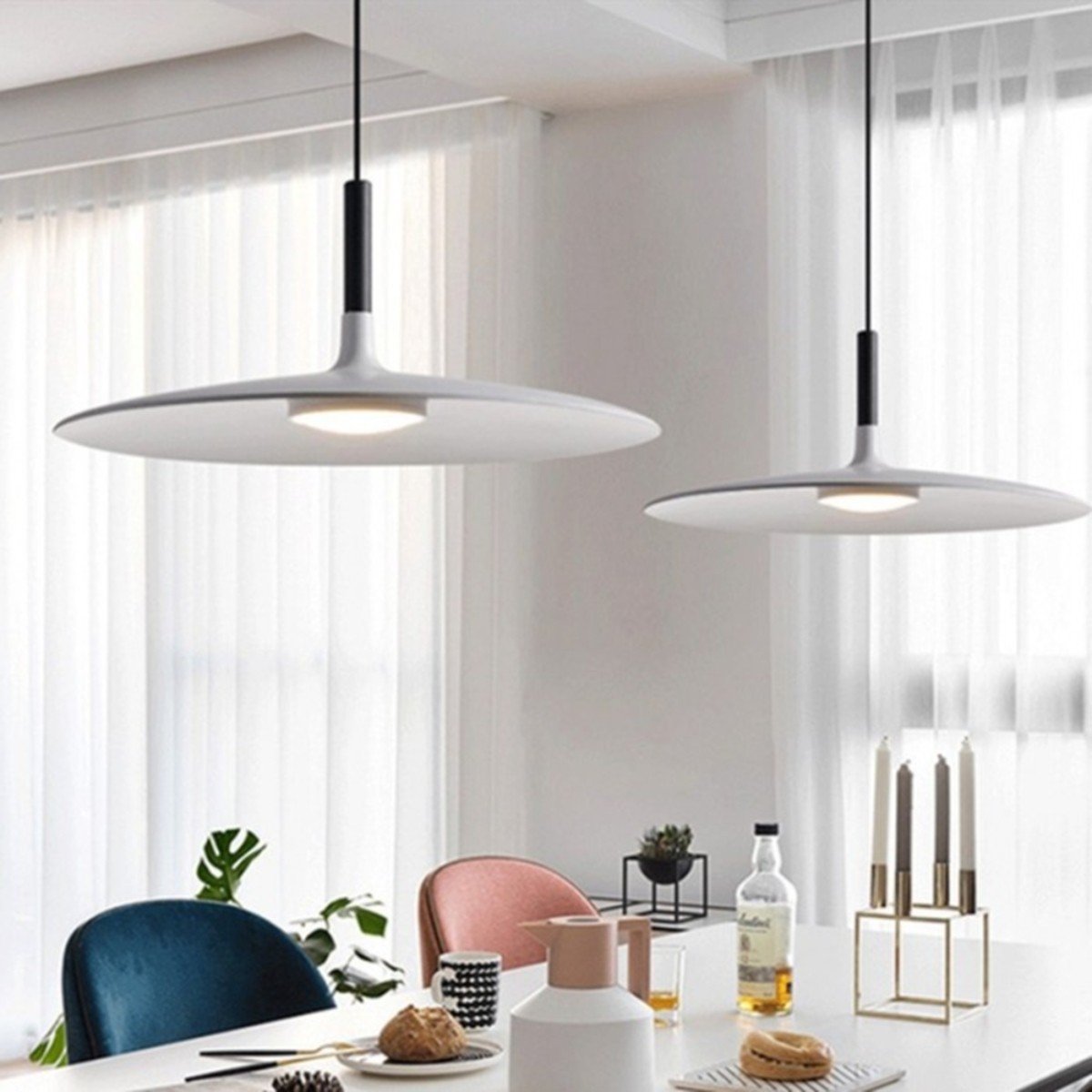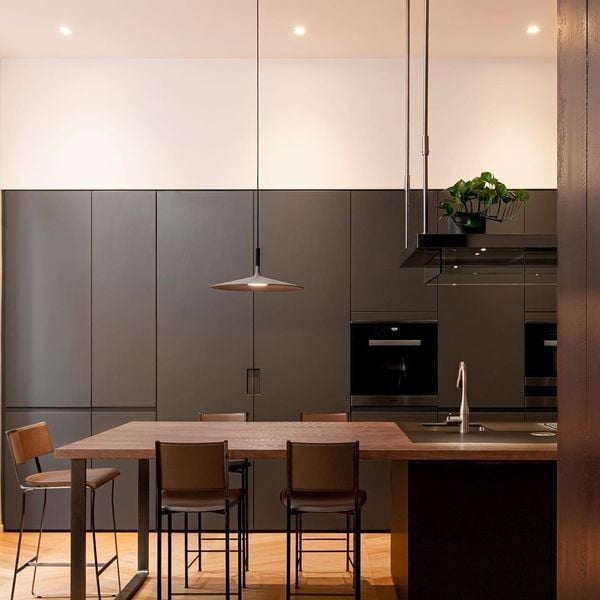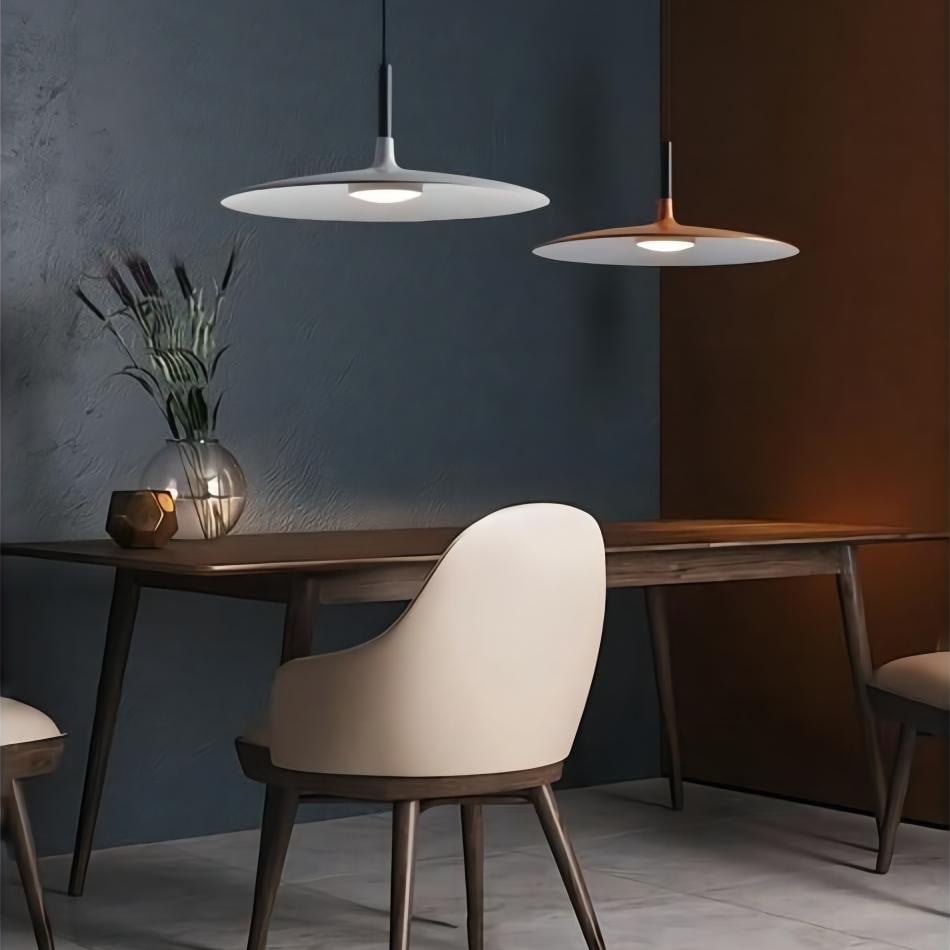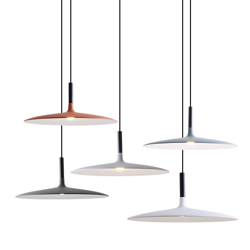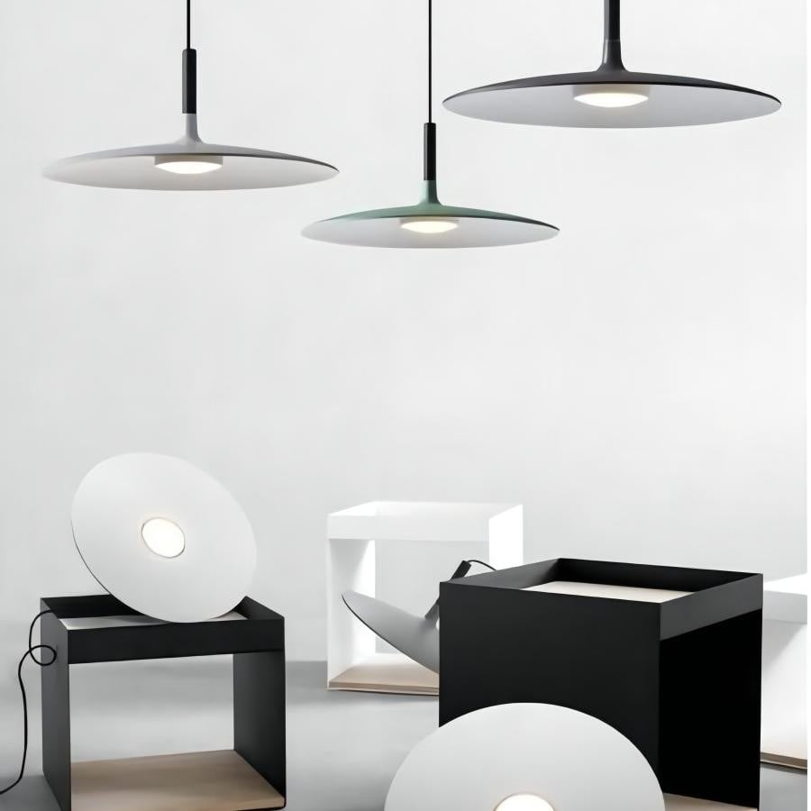 This Aplomb Large pendant lamp adds an industrial touch to its surroundings thanks to its unique design and metal finish. Its shade is in the shape of a flat disc to allow the light to diffuse outwards. Hang the suspension lamp alone or use multiple lights at different heights to create stunning arrangements.