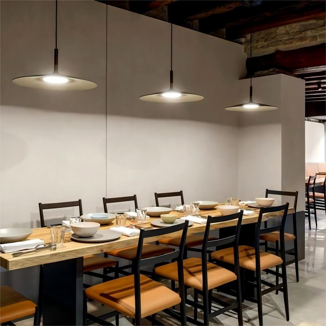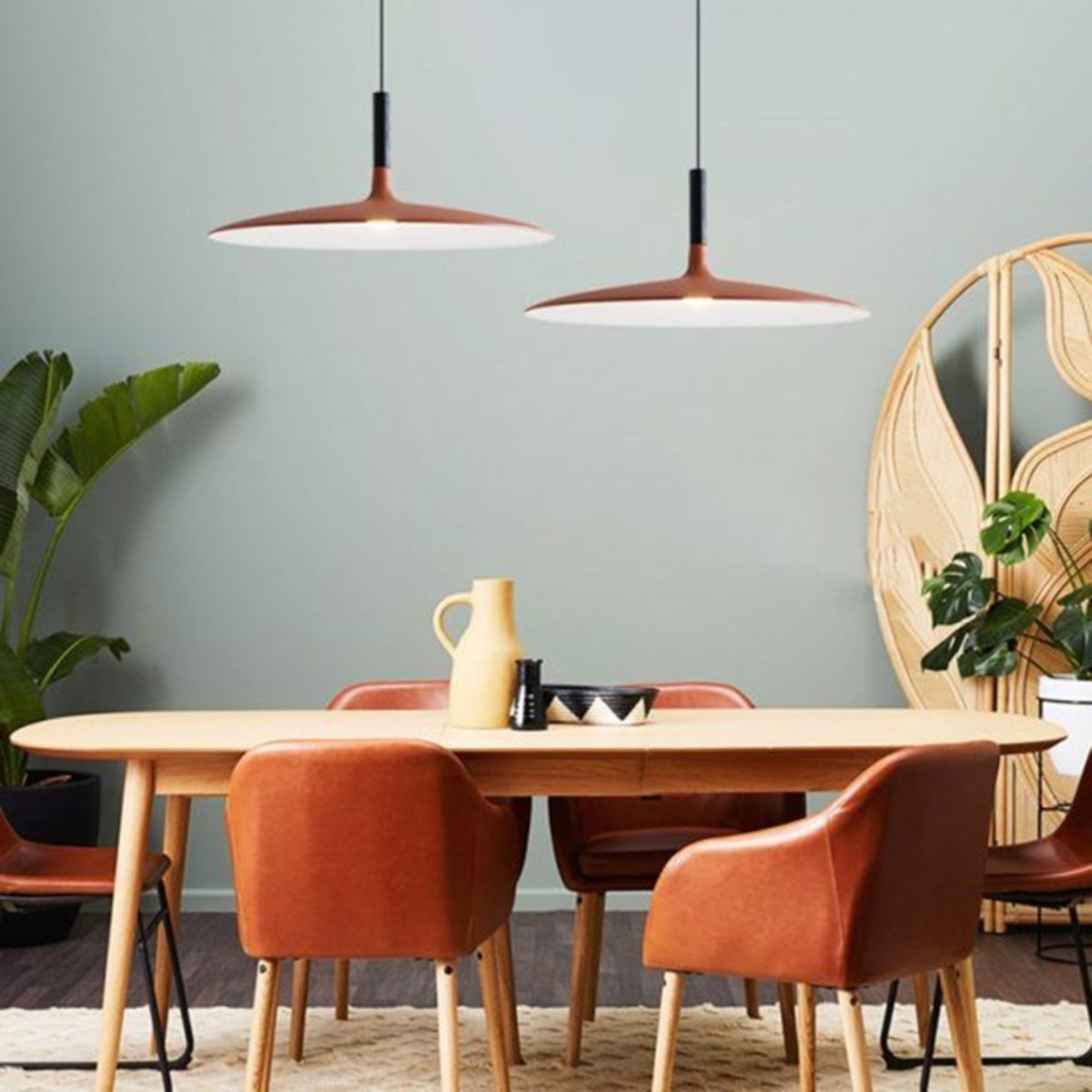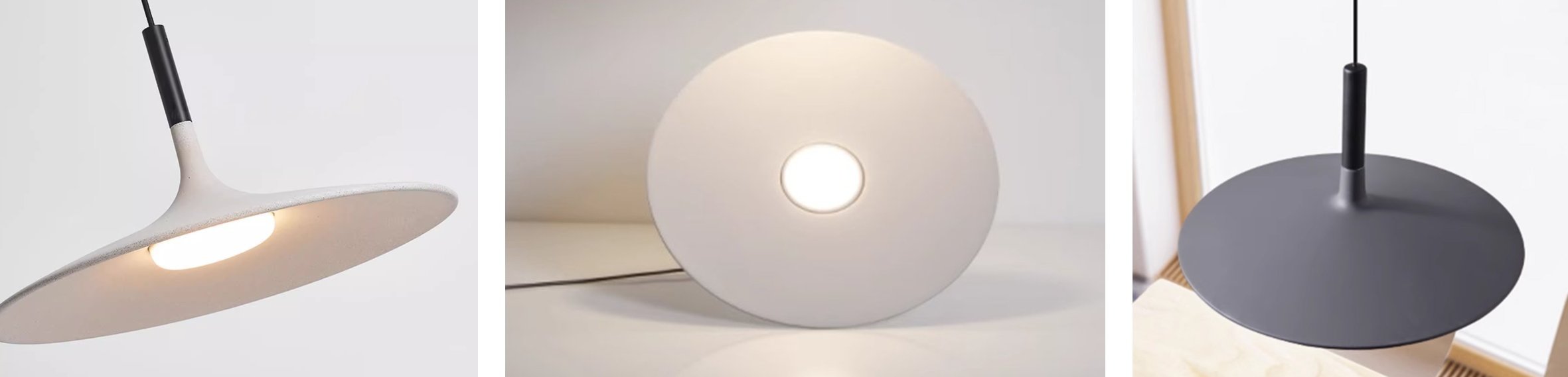 This Aplomb Large pendant lamp adds an industrial touch to its surroundings thanks to its unique design and metal finish. Its shade is in the shape of a flat disc to allow the light to diffuse outwards. Hang the suspension lamp alone or use multiple lights at different heights to create stunning arrangements.