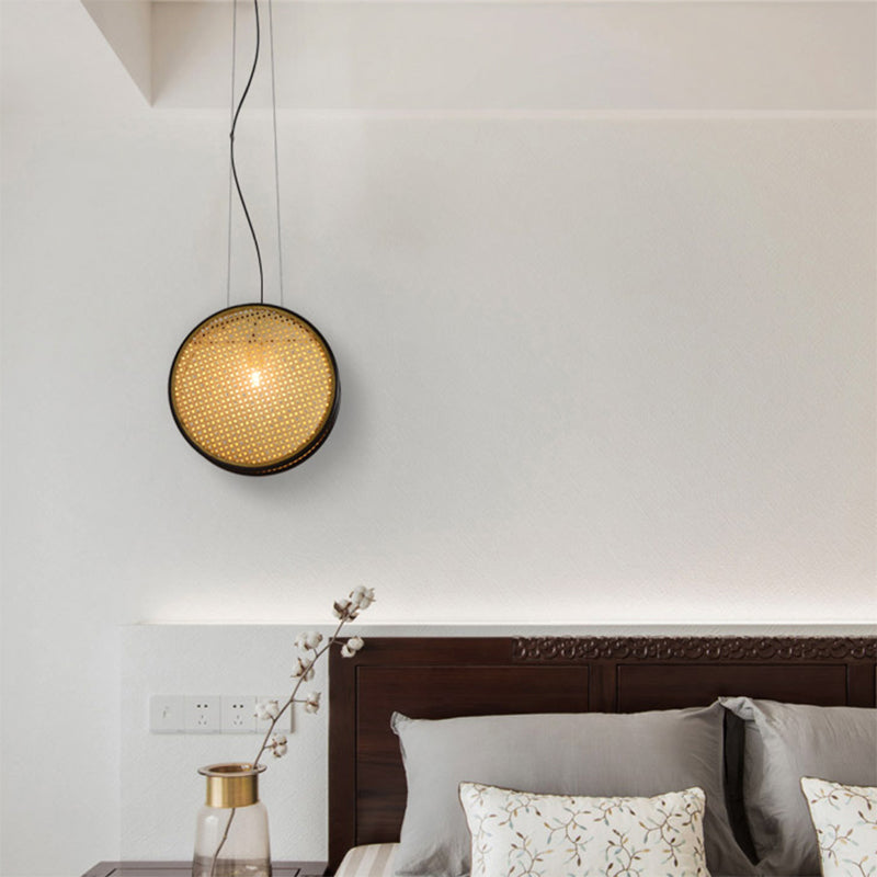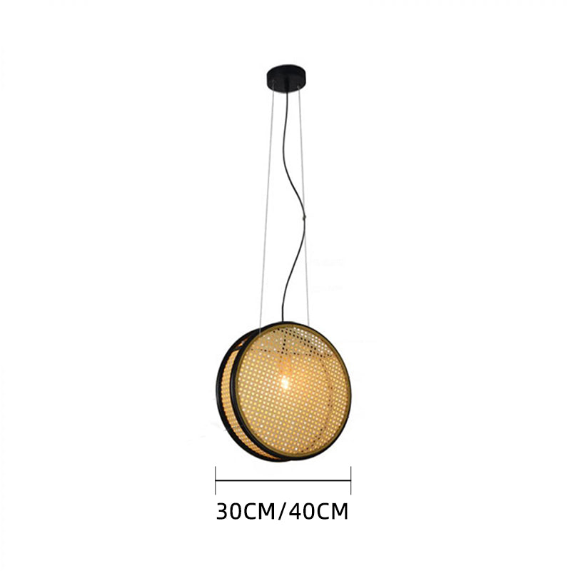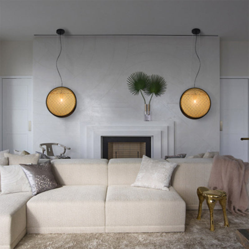 Beige Circle Rattan Hanging Ceiling Light