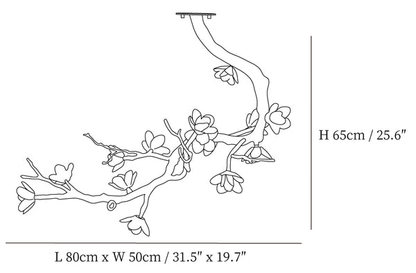 Experience the beauty of nature in your home with our Brass Flower Branch Chandelier. Each branch is carefully crafted to resemble a wild fruit tree, bringing a natural and vibrant touch to any room. Let your space come alive with this stunning piece, a true manifestation of the wonders of nature.