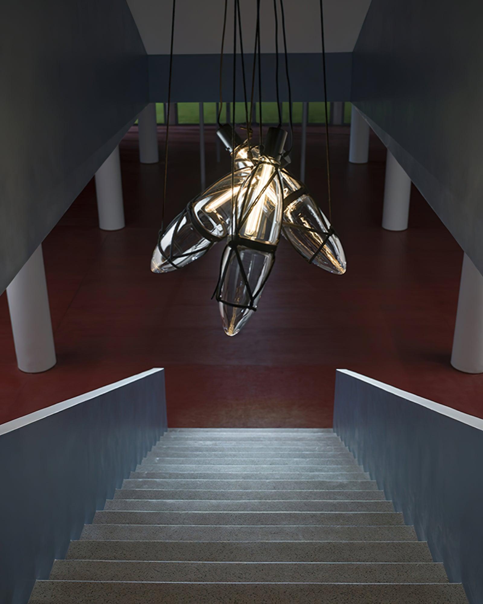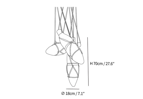 The Castaway Bottle Glass Pendant captures the spirit of a message in a bottle, set adrift on the sea and carrying tales of distant lands. This unique lighting piece features mouth-blown glass shades, each fashioned to resemble a bottle that has weathered the tides of time, complete with the delicate imperfections and bubbles of artisanal glasswork. The shades hang from an entwined array of nylon threads, reminiscent of the ropes and nets that might cradle such a find on the ocean's surface.
