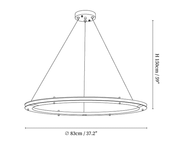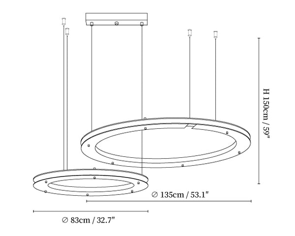 59″ Adjustable hanging height cable, which can be lengthened as required.