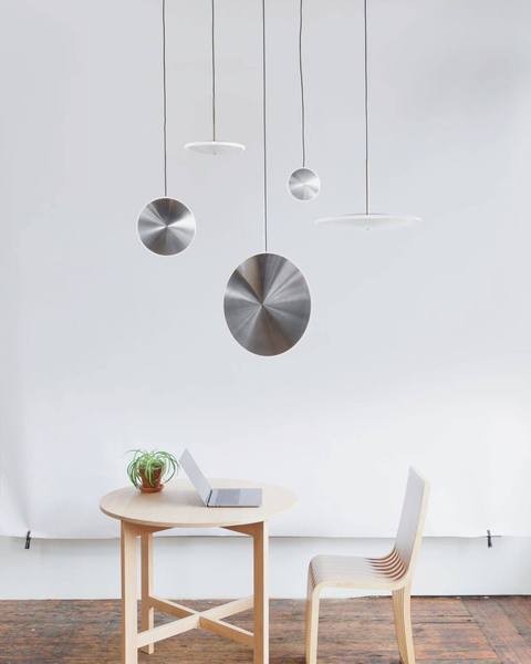 Mimicking the phosphorescent envelope found around stars, Chrona lights create a luminous glow by combining spun brass and diffused acrylic. With a variety of configurations in both horizontal and vertical orientations, Dish pendants can be clustered together to make stunning constellations or individually hung to accentuate any space.