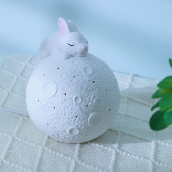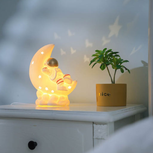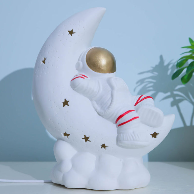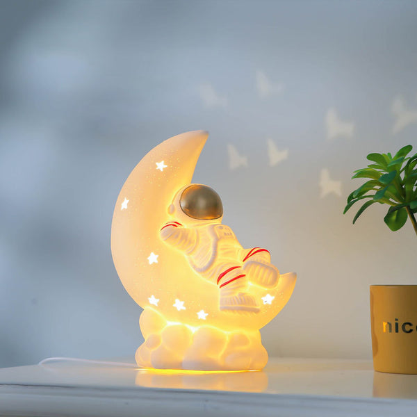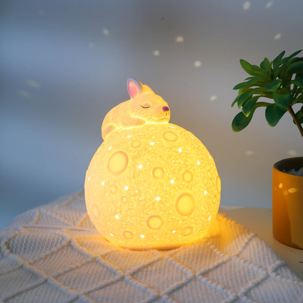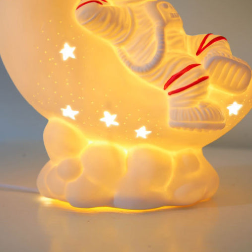 Contemporary Creative Luna Moon Astronaut Rabbit Ceramic LED Table Lamp For Bedroom
