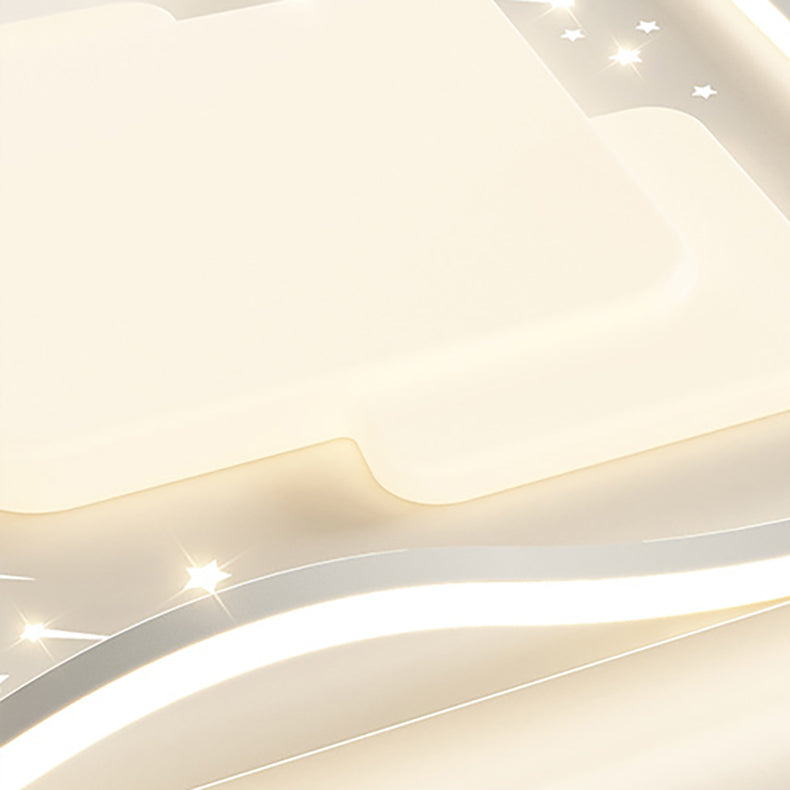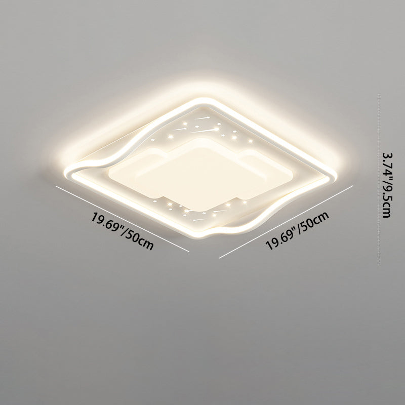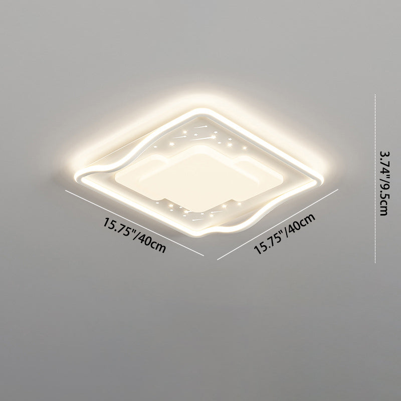 Contemporary Creative Round Square Wave Iron Acrylic LED Flush Mount Ceiling Light For Bedroom