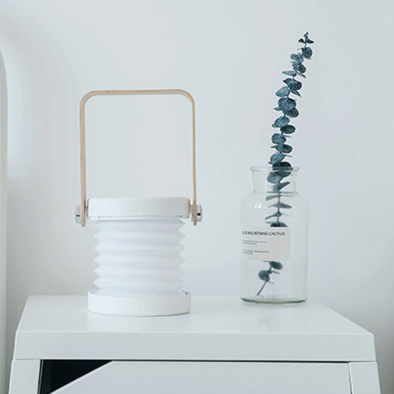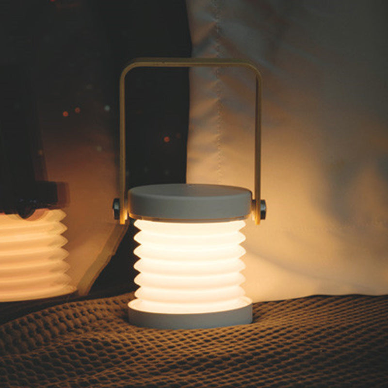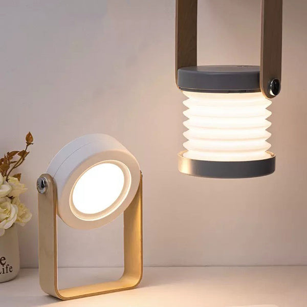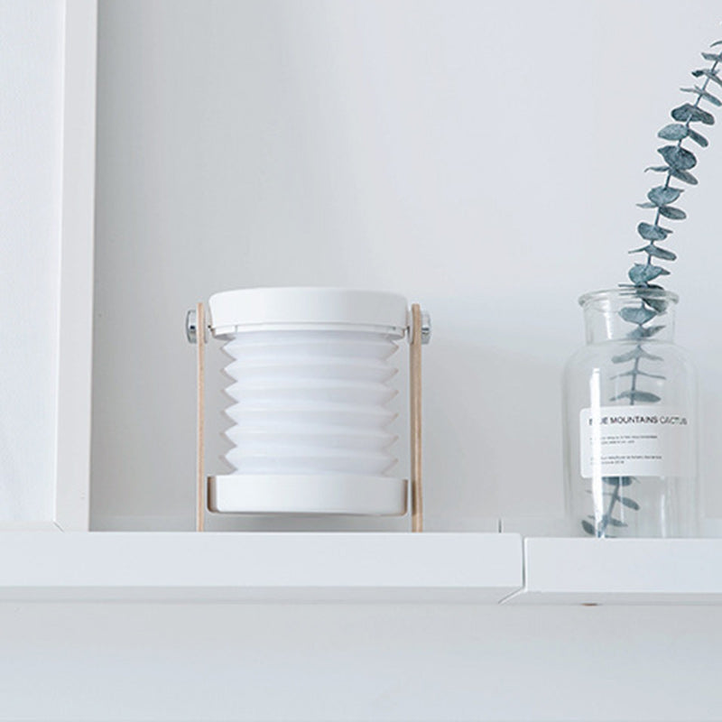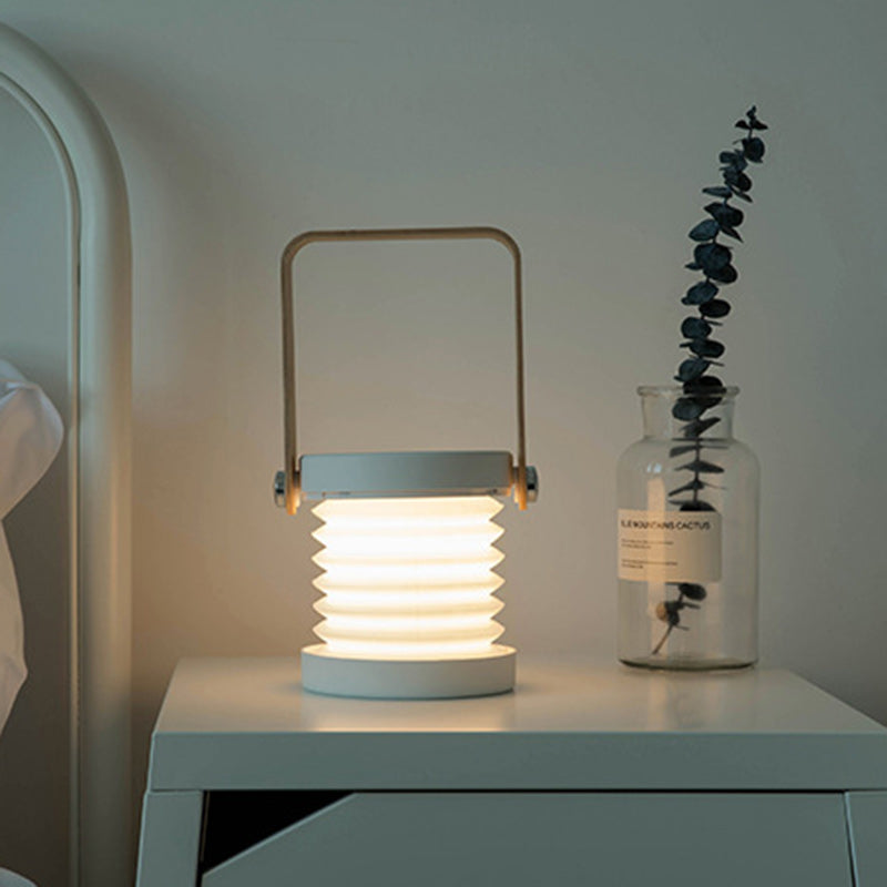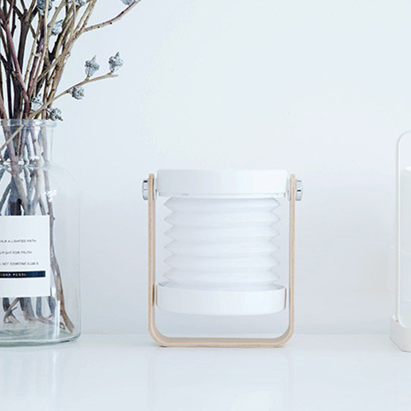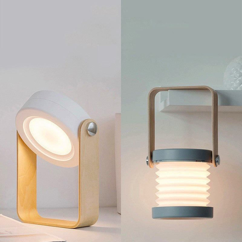 Contemporary Scandinavian Portable Retractable Lantern Cylindrical Wood Iron PC LED Table Lamp For Bedroom
