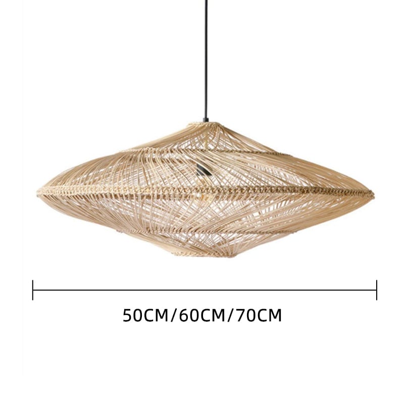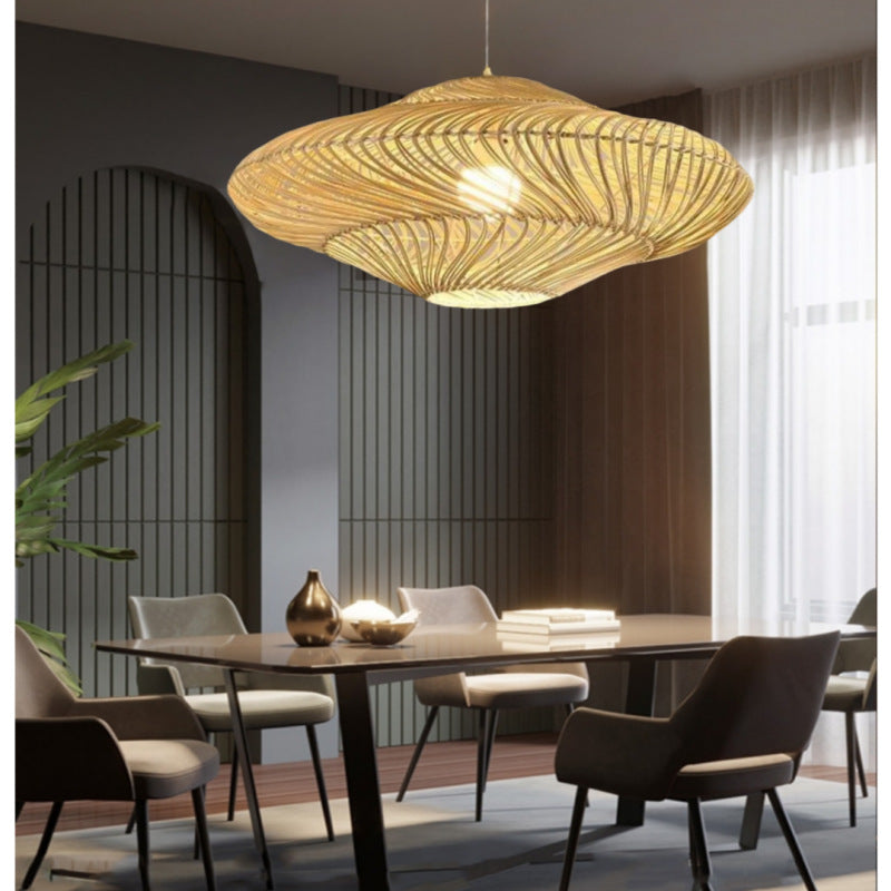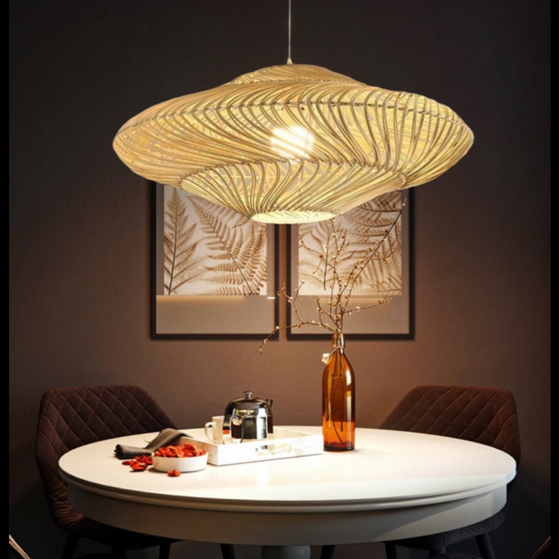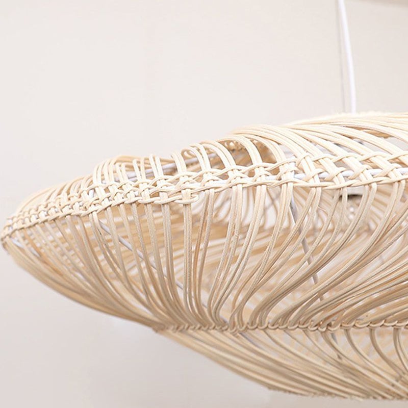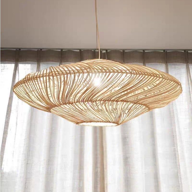 This is a very artisanal rattan pendant light, flying saucer shape lampshade has exquisite texture and fine workmanship.