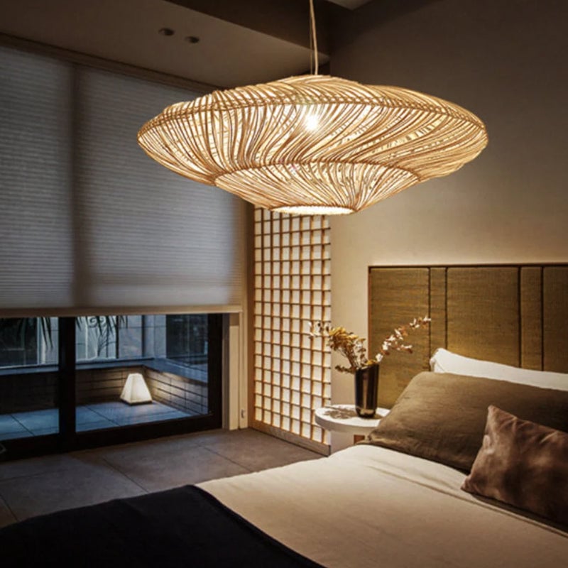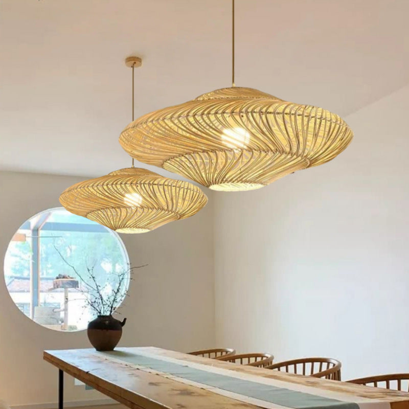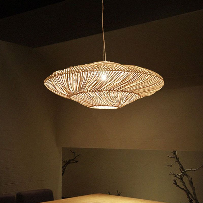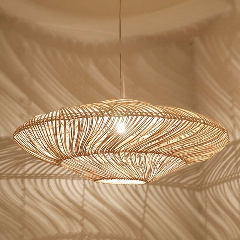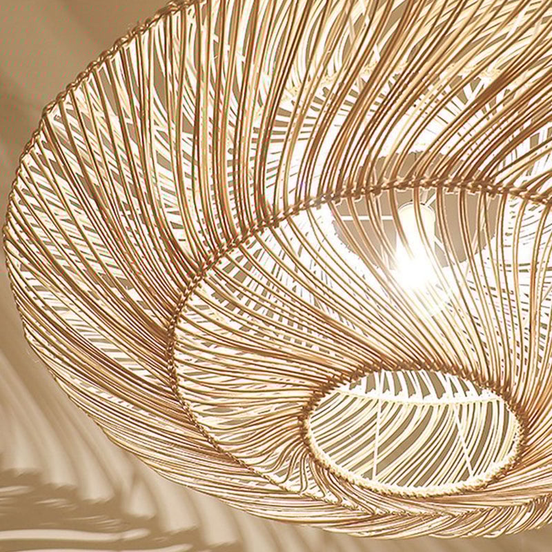 This is a very artisanal rattan pendant light, flying saucer shape lampshade has exquisite texture and fine workmanship.