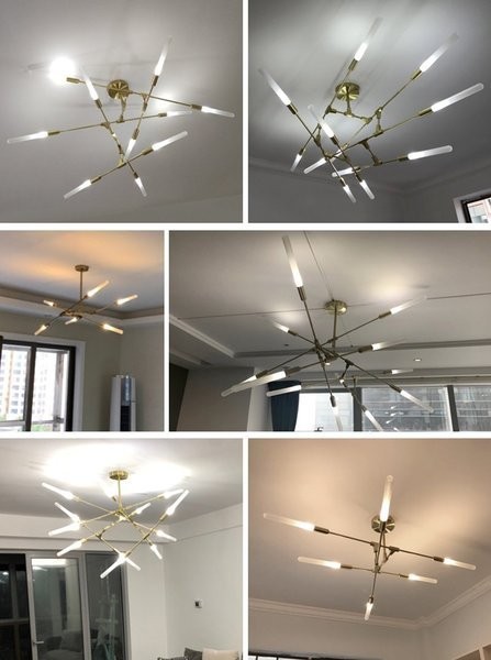 Akin to the intricacies of delicate jewelry, the Dawn chandelier is aesthetically pleasing from every angle and vantage point. Organic feel and sporadic in nature, the fixture gleans a hand-polished finish and the custom hand-blown glass tubes provide perfect soft illumination. This modular system allows the chandelier to articulate and be configured in countless positions, both in horizontal or vertical orientations that suit the spacial needs. The Dawn system is available in 6 - 16 branch configurations, finished in brushed copper, brushed brass or Baking paint black.