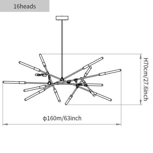 - 12heads size: Dia 160cm x H 63cm/∅ 63″ x H 24.8 in