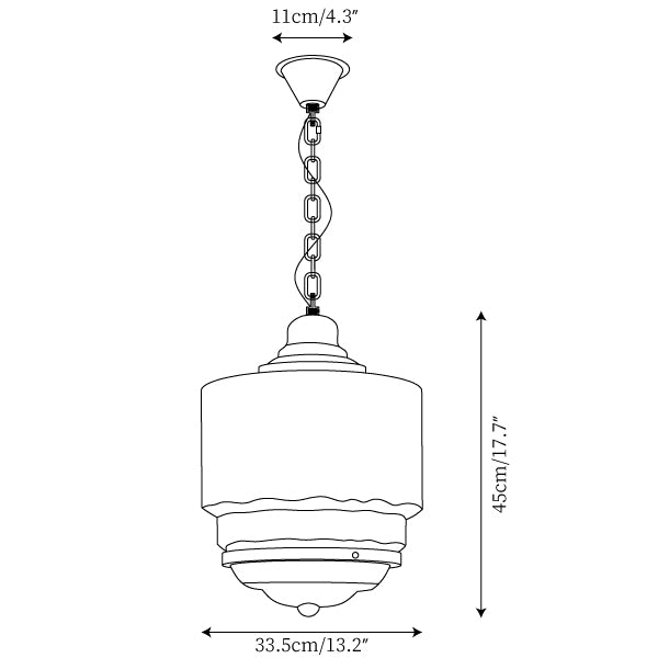 Hanging chain 50cm / 19.7″. The length of the suspension chain can be changed as required. (contact us)