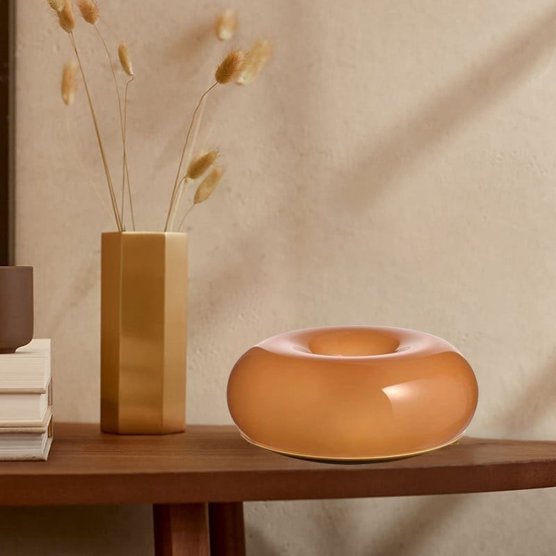 Add a touch of whimsy and charm to your space with this vintage-style decorative glass donut table lamp wall sconce. Made from high-quality glass, the donut wall sconce is available in your choice of white or orange to suit your style. With two mounting options, you can place it on a table or hang it on the wall for added versatility.