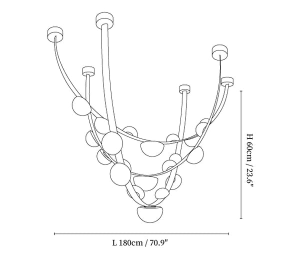 Capture the natural beauty of dew drops with our Dew Drops Alabaster Chandelier. Its intricate details were inspired by the familiar yet captivating shape of dew drops on blades of grass, adding a touch of fascination to any space. Each piece is a stunning work of nature's art.