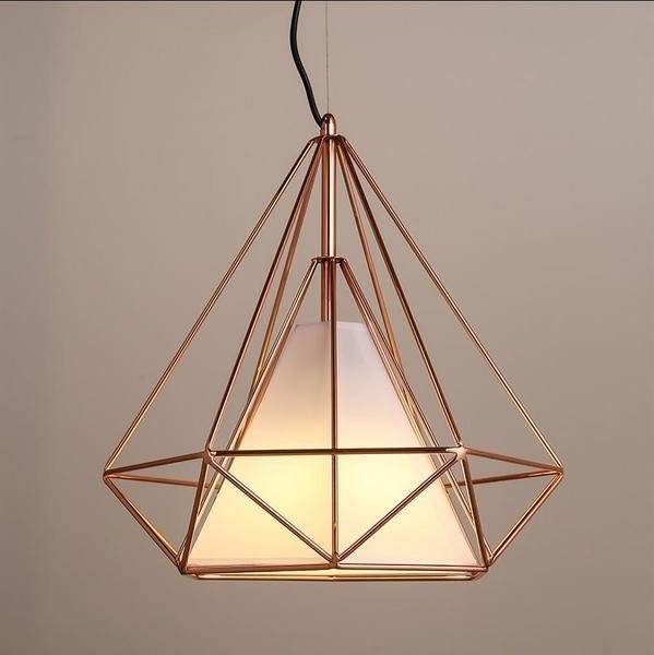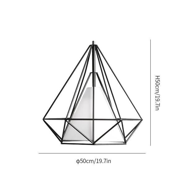 This exquisite single-light geometric pendant illuminates your space in this medieval contemporary style. Crafted from strips of metal, this fixture features a stylish diamond-cage visor for a sleek, faceted look. The streamlined cylindrical socket accommodates a 40-watt A-type incandescent Edison bulb (supplied) for a retro look that will make your space brighter. UL approved for safe use and installation in a dry indoor location, the luminaire is suspended from a sloping ceiling compatible convertible with an adjustable length of rope. Diamond Cage Metal Pendant is very popular with its special appearance design. The light it emits is warm and comfortable. Ideal for bedroom and living room. You can choose the right product according to your needs.
