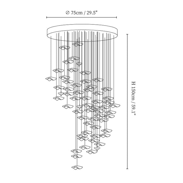 Size: Dia 75cm x H 150cm / ∅ 29.5″ x H 59.1″, Cascading Wave: 69 Pieces.