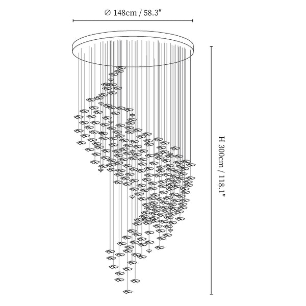 Size: Dia 148cm x H 300cm / ∅ 58.3″ x H 118.1″, Cascading Wave: 285 Pieces.