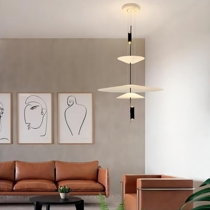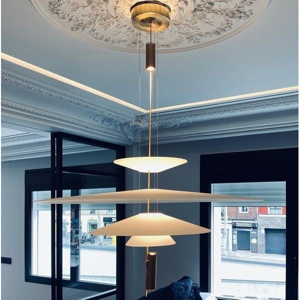 - A:Dia 68 cm x H 83 cm(Shades: Dia 36 cm + Dia 68 cm + Dia 36 cm + Dia 21.5 cm /∅ 14.2''+ ∅ 26.8''+ ∅ 14.2''+ ∅ 8.5'')