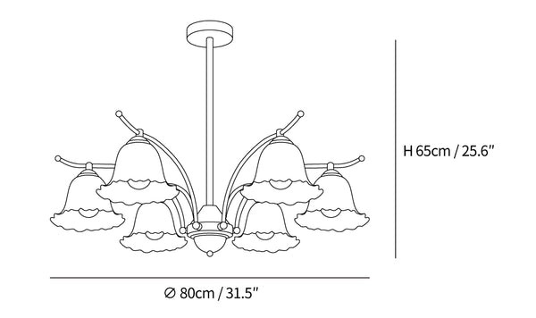 Perfect for gracing the space above your dining table or adding a touch of sophistication to your living room, the "Flora Brass Chandelier" is not just a source of light but a statement piece that celebrates the natural allure of flora. Whether switched on to illuminate your evenings or simply admired during the day, this chandelier is a tribute to the art of lighting design and a testament to the beauty found in nature's forms.