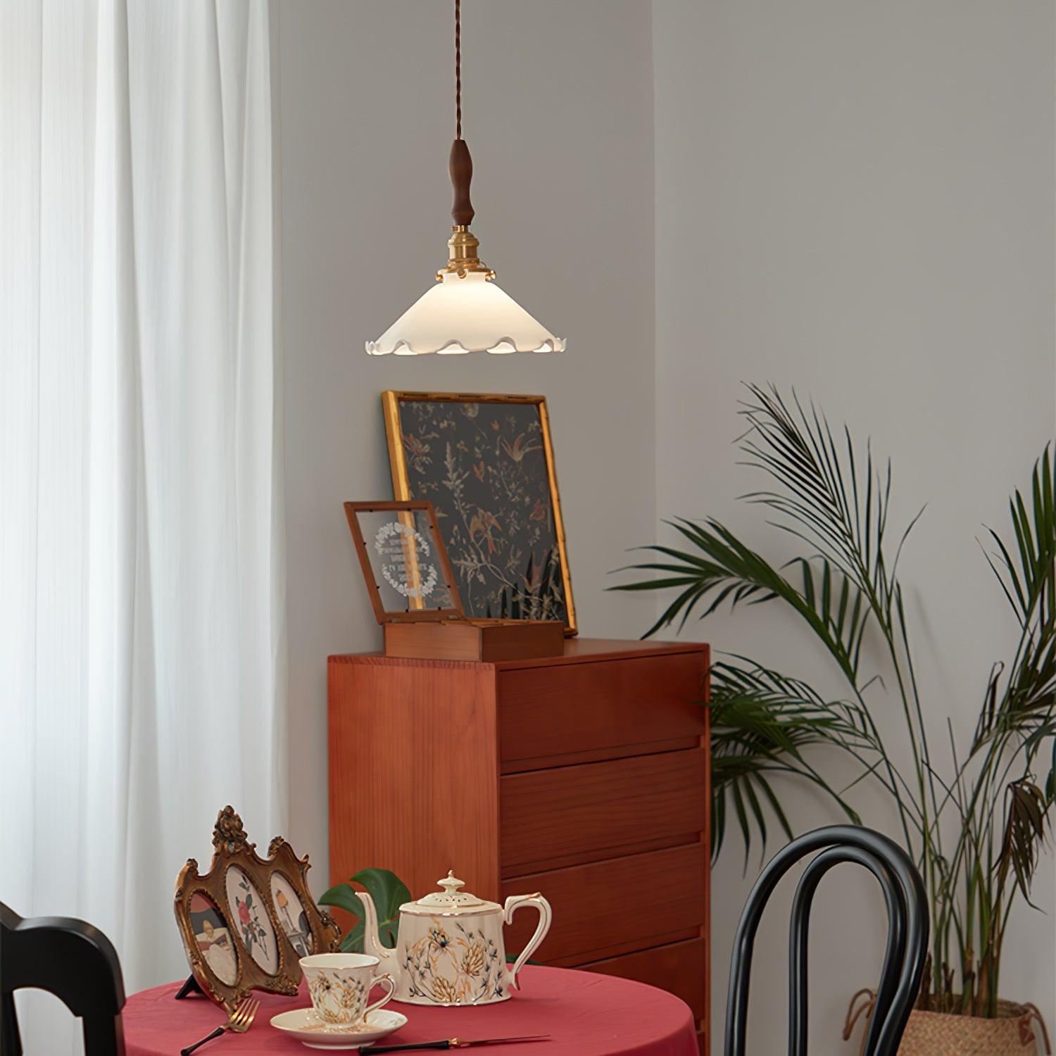 Add a modern flourish to your home with the Flower Petals Pendant Lamp. The elegant lamp features a stunning flower lampshade with a lamp body that curves downwards. It will instantly draw admiration and become a beautiful lighting centerpiece. Perfect for a modern living room or living space.