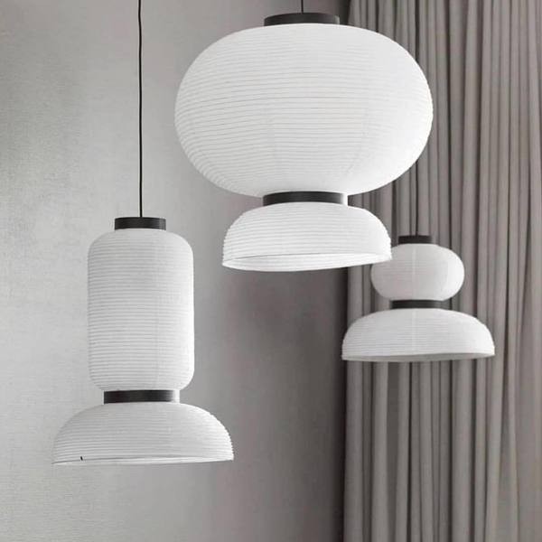 Formakami pendant light is a modern take on classic Asian paper lanterns. Our aim was to create a light pendant that illuminates people's lives both literally and symbolically. The white colour of the shade emphasizes the lightness of rice paper and the open bottom maximizes the amount of light. Black stained oak rings give Formakami’s handmade shade a pleasant rhythm. known for his playful designs, has combined round shapes in different sizes, and the end result is a collection of three unique pendant lights. Dating back centuries, paper lanterns have featured in Asia amongst the privileged and the poor, where different colours, shapes and sizes connote different meanings. Here Hayon has dispensed with cultural formalities to create a series of lanterns all in white. Handcrafted with rice paper merging various sizes and shapes together. “Lamps play such an important role in people’s lives,” explains Hayon. “For some cultures, they chase away the darkness by bringing hope. I’ve tried to keep this emotional angle about light – in a lamp that also appears light. By making the bottom part of the lamp open, the idea is to bring even more illumination to people everywhere in the world.” The Paper Lantern series is comprised of three different versions of ivory white rice paper with black stained oak accents in sizes from 46 cm in diameter to 70 cm. Each weighing only 1 kilo, they hang delicately in any indoor setting. Living proof that when East and West meet, the past becomes the present in a poetic expression of both. Seen in an ultra light pendant lamp of rice paper, echoing ancient lanterns from Asia - reinvented in a modern aesthetic.