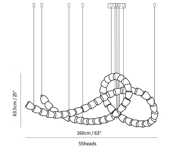 Gabriel Chandelier H was inspired by the graceful movements of snakes, presenting a smooth and modern lighting effect. Its interconnected sections create a smooth coiled design that mimics the gentle curves of a snake. Its minimalist style brings stunning visual impact, while integrated lighting casts a subtle glow that emphasizes its sinuous shape. Blending natural aesthetics with modern design, this fixture is perfect for adding a touch of sophistication to any modern space.
