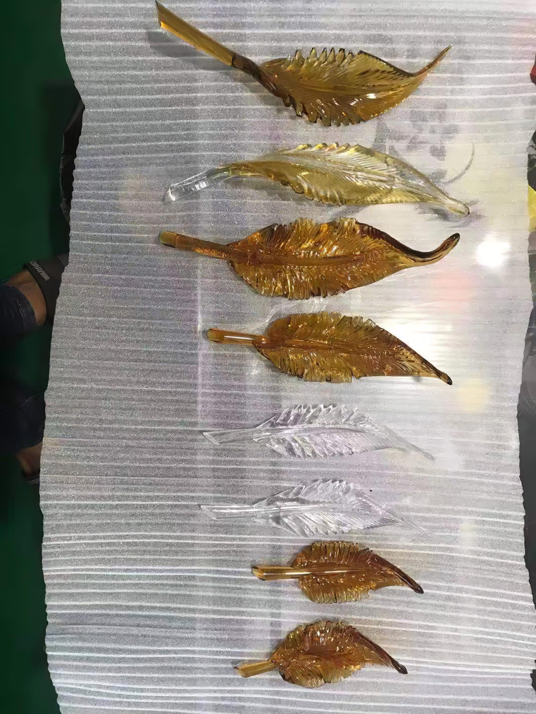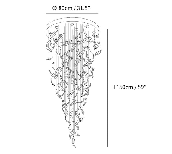 Elevate your home or business with this stunning Glass Feather Chandelier. Handcrafted with delicate blown glass feathers, this chandelier creates a charming and elegant display. Perfect for hotel lobbies, shopping centers, villas, and other upscale venues. Choose from a variety of colors to suit your decor. Easy to install with all necessary hardware included.