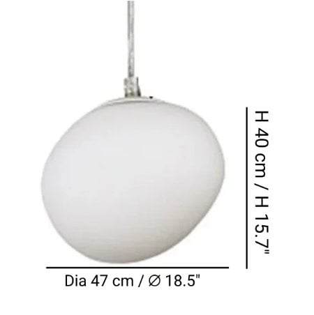 The Gregg pebble lighting was designed in 2007, a collection inspired by the pebbles by the river. The pendant lamp is available in four sizes, each displaying a unique shape. The smooth white glass lampshade emits a warm, non-dazzling light. It can be placed anywhere you like in your interior. The light will create a relaxing environment.