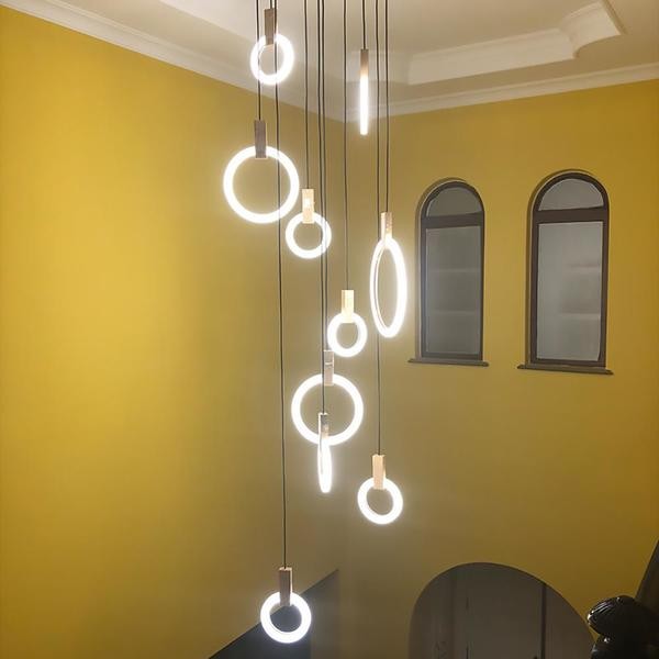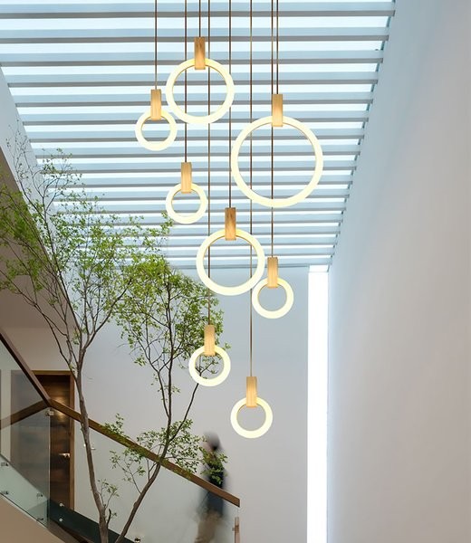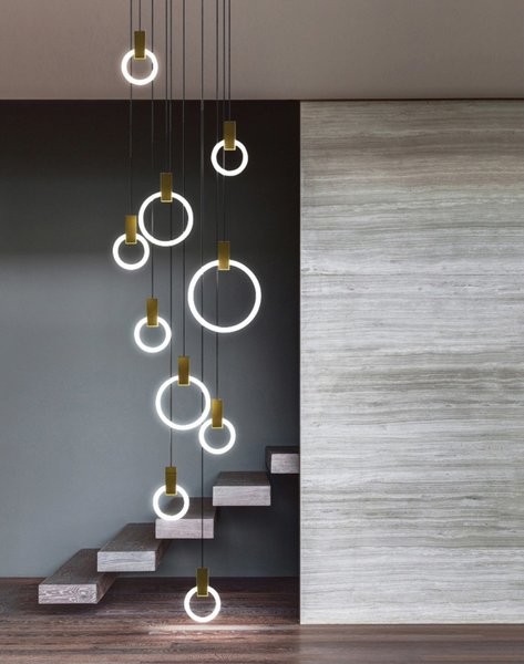 Originally conceived as a graphical interpretation of effervescence, Halo is a series of bold lamps inspired by the warm glow of their illuminaire. The modular system allows for Halo pendants to be suspended in a multitude of compositions - akin to sophisticated, hanging art pieces both illuminated and at rest.