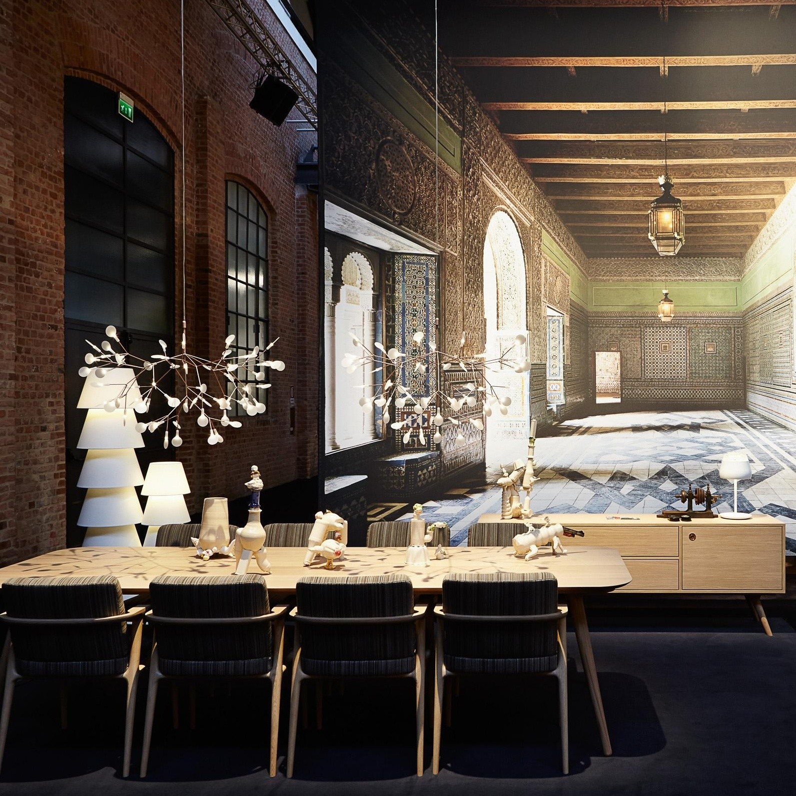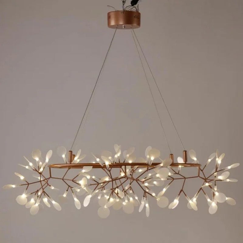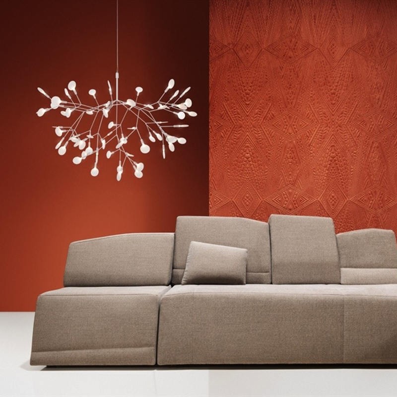 Design by Bertjan Pot Powered Through Electrosandwich by Marcel Wanders, 2010. The white leaves/lenses ramify from one branch creating a very technical, natural structure. By using the technique of coating conductive layers (Electrosandwich), the lamp is very thin and delicate. A design not possible with normal wires. The Heracleum leaves are not frozen in one position. They can be freely re-positioned by rotating them around their stem. Heracleum II provides decorative ambient light. Metal wire frame, polycarbonate lenses and ultra-thin suspension wire. Offered in nickel or copper.