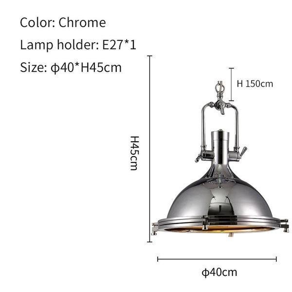 This sturdy, single pendant nautical industrial light in polished chrome boasts smooth lines and sports a diffuser cover to create a lovely, soft light in any room. Bulb not included. Industrial Country metal pendant light is very popular with its special appearance design. The light it emits is warm and comfortable. Ideal for dining table and living room. You can choose the right product according to your needs.