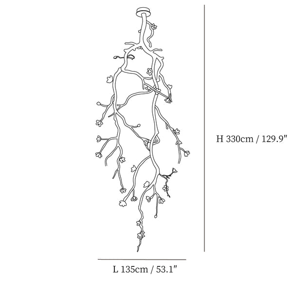Experience the beauty of nature in your own home with our Large Long Branch Flower Chandelier. Carefully crafted from wild fruits found in a virgin forest, this chandelier brings an organic touch to any space. Add vitality and charm to your space with this one-of-a-kind piece.