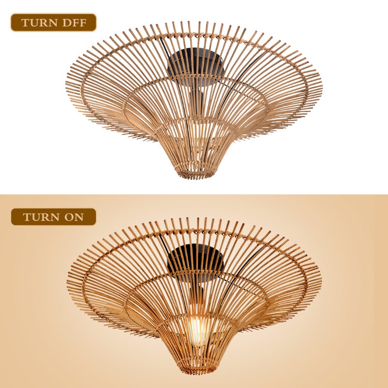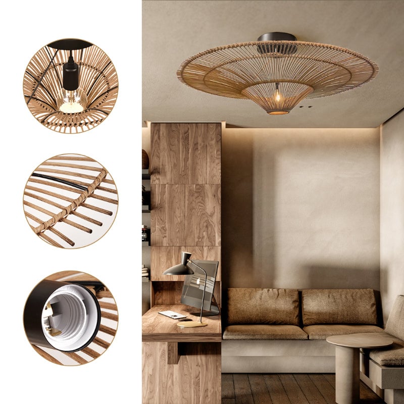 Made of natural rattan with metal frame inside. A sturdy oversized rattan lamp suitable for indoor or outdoor lighting under cover and some designs are suitable for exposed outdoor.