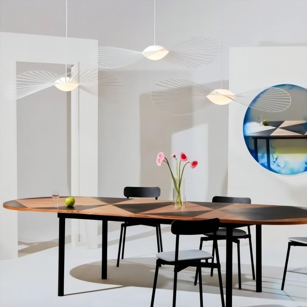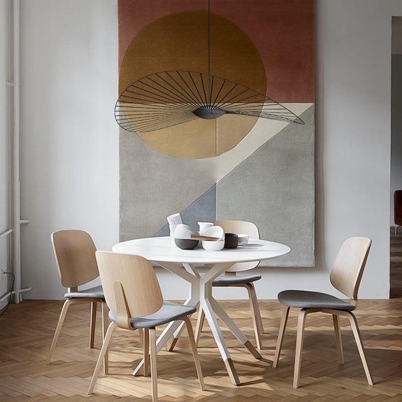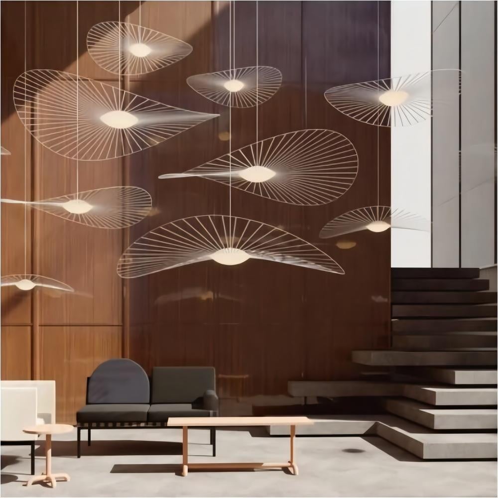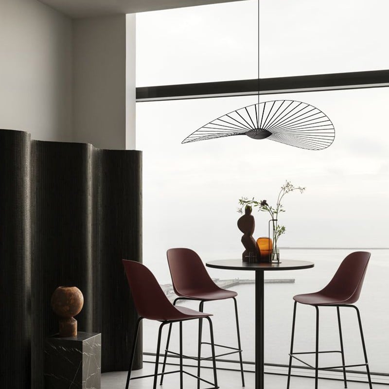 When this Vertigo Nova lamp is whirling in the wind, its strips are flickering. The "hat" Lamp removes one of the conspicuous features of lighting holder, which is its outstanding design, making it look like more a chic adornment than a pendant light.
