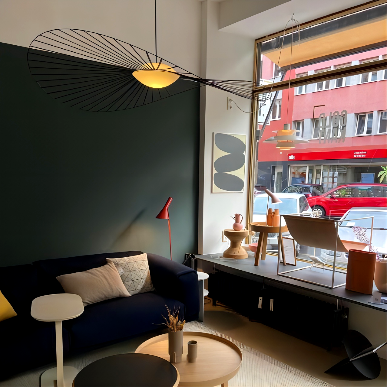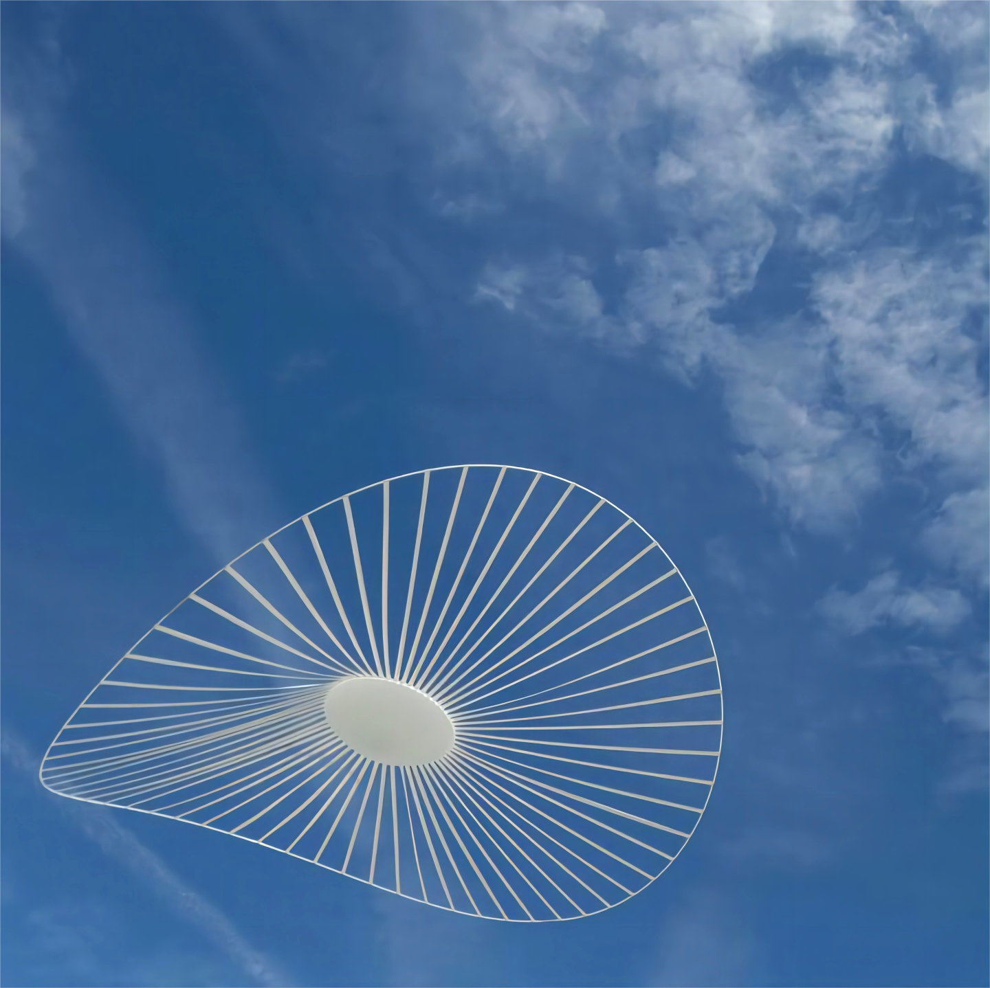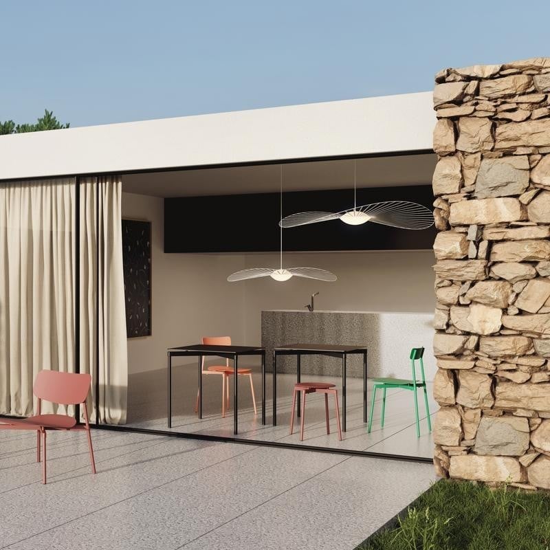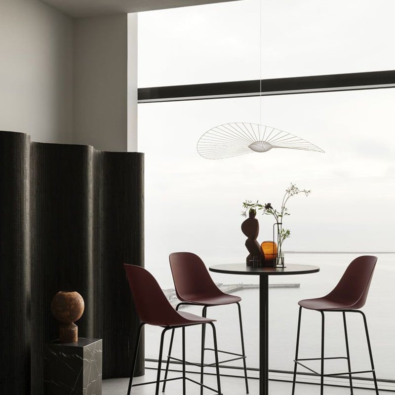 When this Vertigo Nova lamp is whirling in the wind, its strips are flickering. The "hat" Lamp removes one of the conspicuous features of lighting holder, which is its outstanding design, making it look like more a chic adornment than a pendant light.