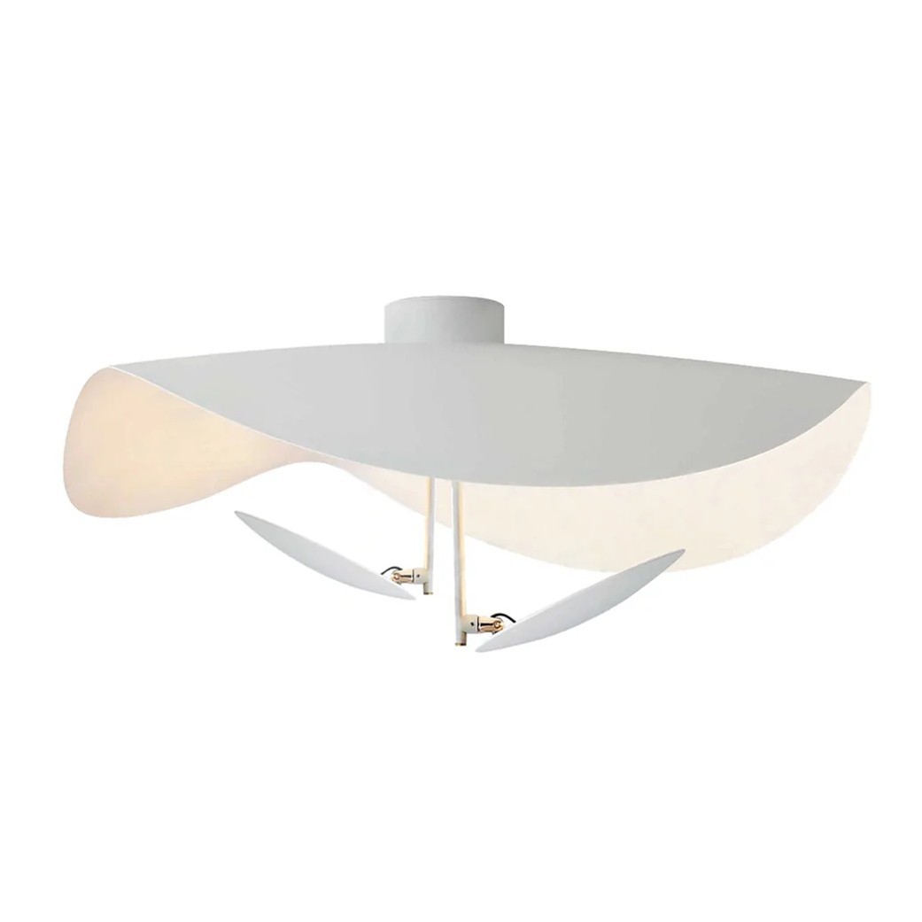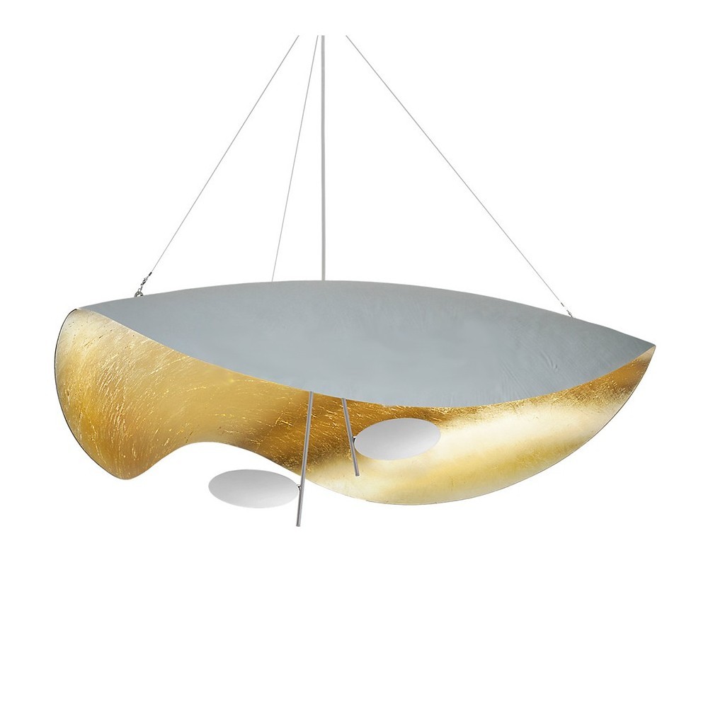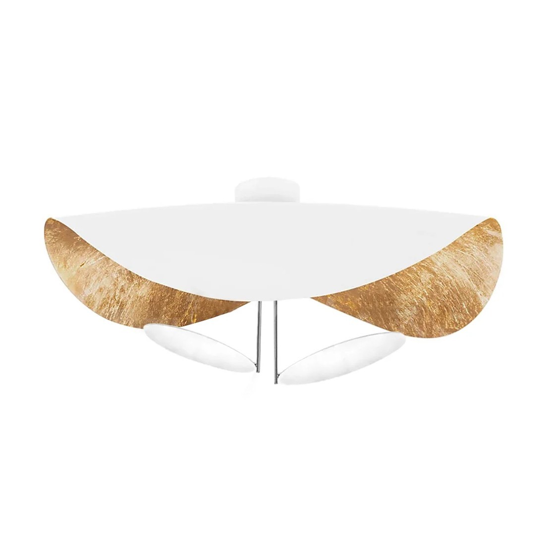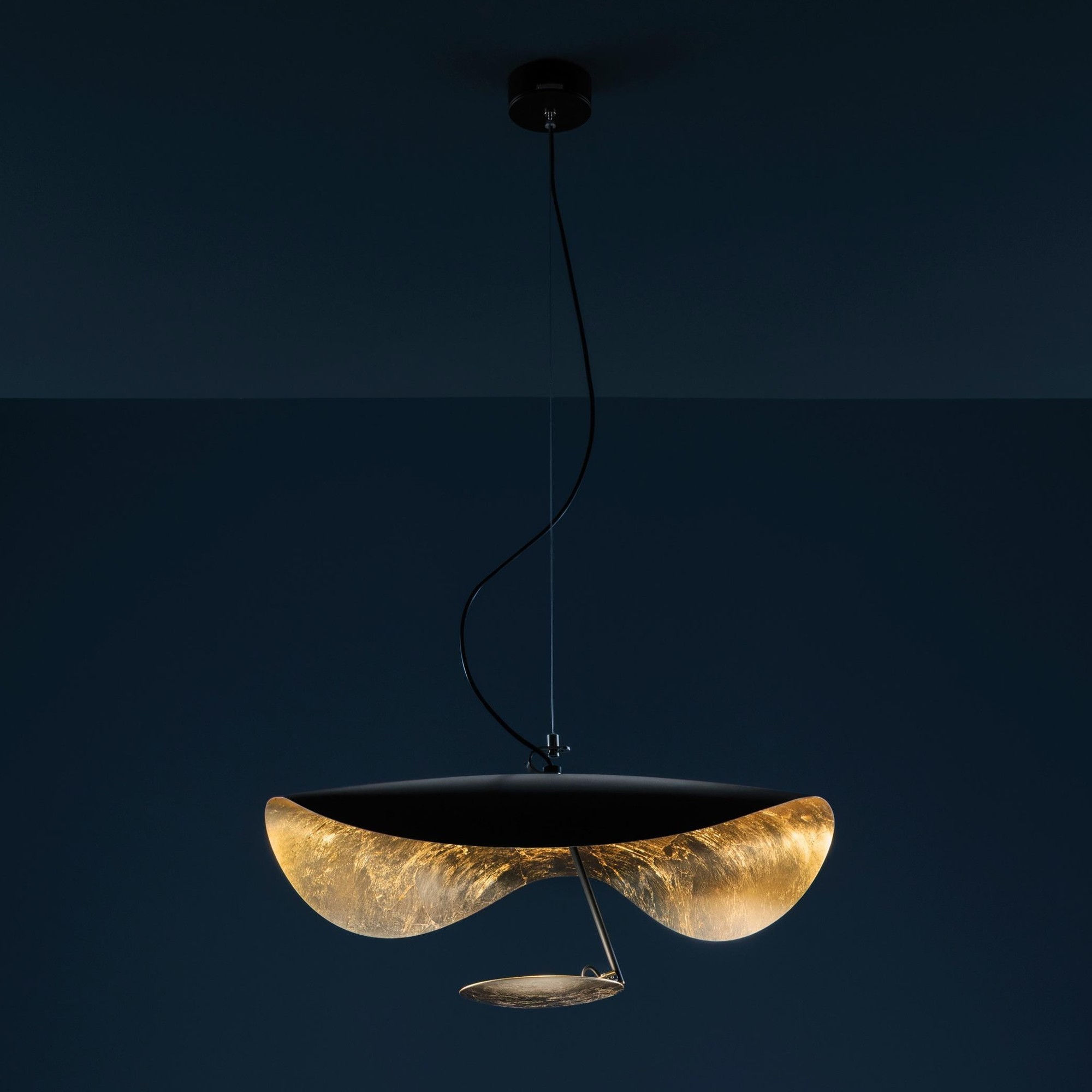 The Lederam Manta Pendant/ Ceiling features a gracefully curving shade that embodies fluidity and the accuracy of the motion required to draw a line, with a disc shade extending out with a metal rod. Finished in White with the option of a White, Satin, or Gold rod. May be ceiling or wall mounted. CE listed. Born in 1950, Enzo Catellani lives in Bergamo. During the 1980s, he began the limited-series production of lamps made to his designs, for sale through his own shop. In 1989, the lamps attracted the attention of Düsseldorf-based distributors Renate and Peter Meese, who presented them at the Ambiente expo in Frankfurt, where they were rapturously received.