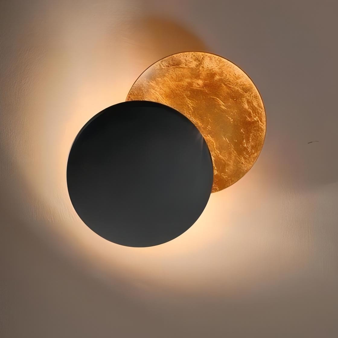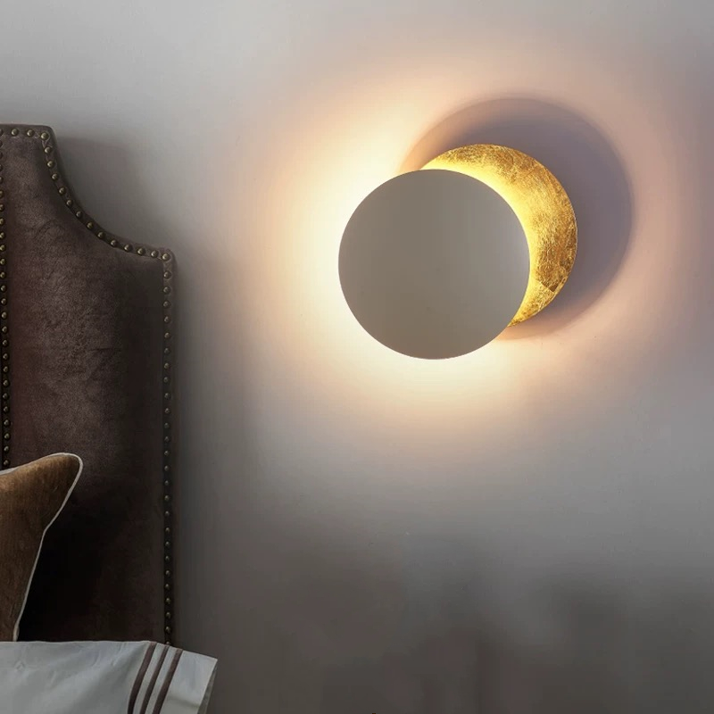 The fascinating nordic creative moon eclipse wall light features an adjustable disc that creates varied lighting effects. This emotional design combines modern LED technology and is available in various color combinations.